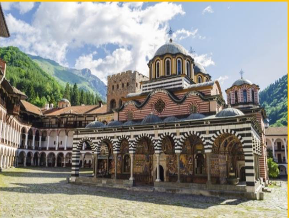 del Monastero di Rila (Patrimonio dell’Umanità UNESCO). Il Monastero, immerso nelle foreste secolari del massiccio montuoso del Rila, si presenta come un complesso imponente, con la chiesa principale nel centro, ornata da dipinti murali, opera dei migliori pittori bulgari dell’epoca. Con le sue alte mura di cinta e le molteplici feritoie, il santuario, assomiglia più ad una Fortezza. E’ un edificio di quattro piani con 300 celle, un grande cortile centrale, una chiesa e la torre del despota Hrelio. L'opera d'arte più preziosa, contenuta nella chiesa del monastero è l’iconostasi intagliata in legno. Visita anche del