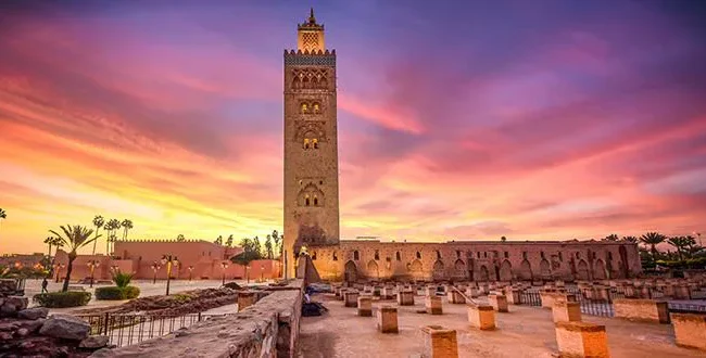 Prima colazione in hotel. Giornata dedicata alla visita della splendida Marrakech, la più importante città imperiale nella storia del Marocco. Marrakech comprende una vecchia cittadina fortificata brulicante di venditori con le loro bancarelle, con circa 18 souk che espongono merci artigianali di ogni tipo tra cui i tradizionali tappeti di fattura berbera. Godetevi il Palazzo Bahia ed il Minareto Koutoubia, la piazza centrale di Marrakech ed il luogo più importante della Medina. Qui si svolge la vita sociale della città. Visita ad una erboristeria tipica di Marrakech. Rientro in hotel per il pranzo. Nel pomeriggio proseguimento della visita alla famosa Djemaa El Fna, luogo di mercato passando per Dar El Bacha (visita esterna), i souk Semmarine e il centro storico di Marrakech. Le mura rosse della città, erette per volere di Ali ibn Yusuf nel 1122-1123 e vari edifici costruiti in questo periodo in pietra arenaria, hanno dato alla città il soprannome di "città rossa" o "città d'ocra". Alla sera trasferimento in ristorante tipico in città per la cena accompagnata da musica folkloristica. Al termine rientro in hotel e pernottamento.