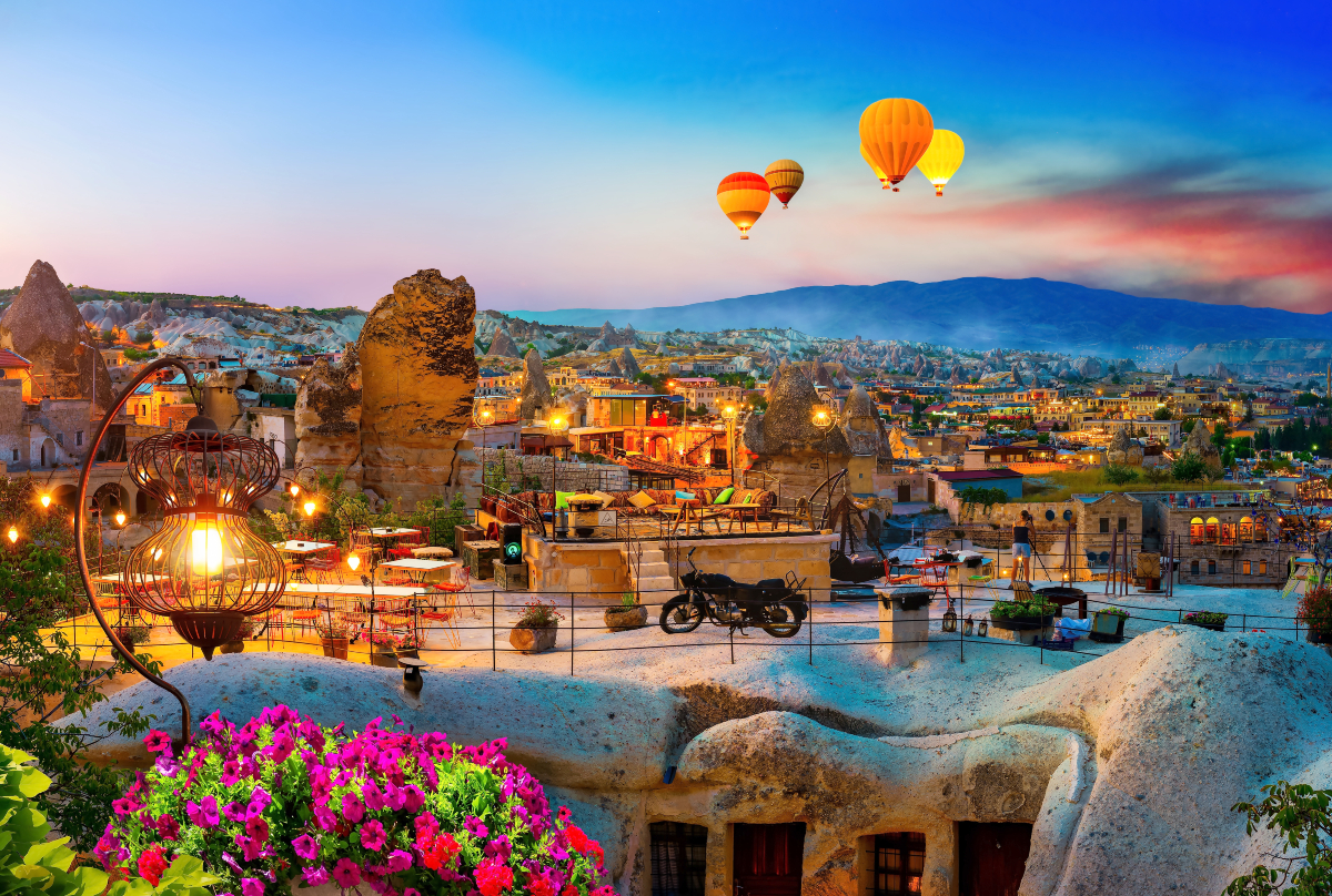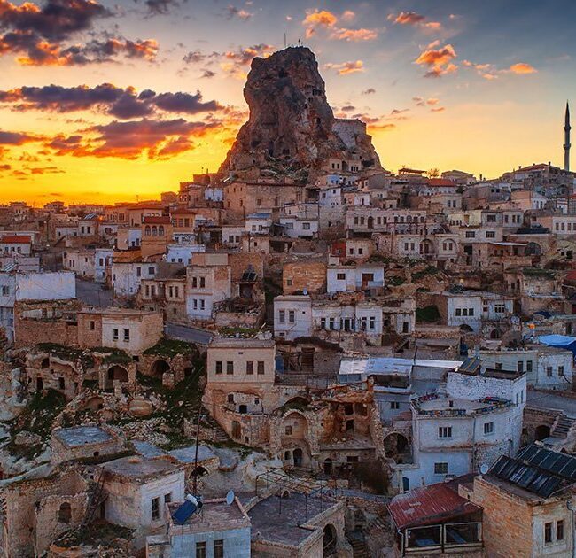 Valle di Pasabag, detta pure Valle dei Monaci proprio grazie a queste formazioni in tufo intagliate a forma di cono, suddivise a loro volta in coni più piccoli, che in passato servivano da rifugio agli eremiti e visita della Valle di Zelve, un antico villaggio rupestre che si sviluppa nei fianchi di tre valli adiacenti. Un capolavoro di tunnel, stanze, passaggi, chiese e abitazioni scavate nella roccia e di una cooperativa locale dove sarà possibile scoprire tutti i segreti della lavorazione dei famosi tappeti turchi in esposizione. Visita esterna della Cittadella di Uchisar, situata all’interno di un cono di roccia tufacea. Pranzo in ristorante in corso di escursione. Continuazione con la visita alla Valle di Guvercinlik, detta Valle dei Piccioni e del Museo all’aperto di Goreme, la più spettacolare e famosa tra le valli della Cappadocia, disseminata di colonne rocciose intagliate nel tufo che prendono il nome di "camini delle fate", perché conferiscono alla valle un aspetto fiabesco. Trasferimento per il rientro in albergo. Cena in hotel e pernottamento