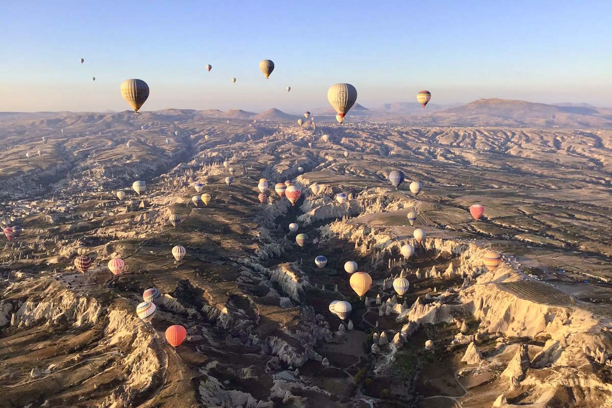 tra le valli della Cappadocia, disseminata di colonne rocciose intagliate nel tufo che